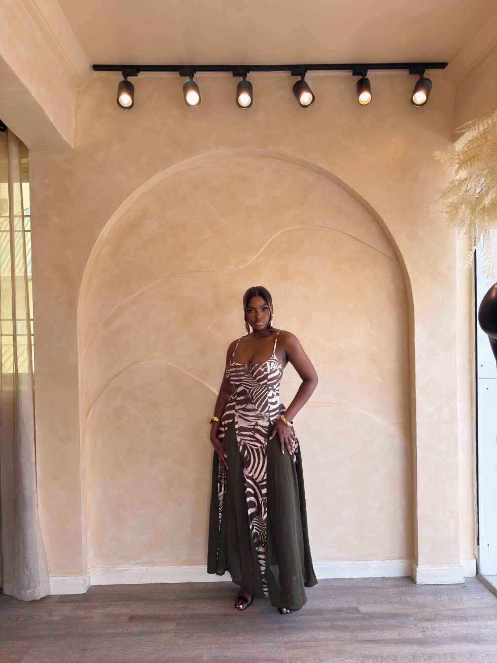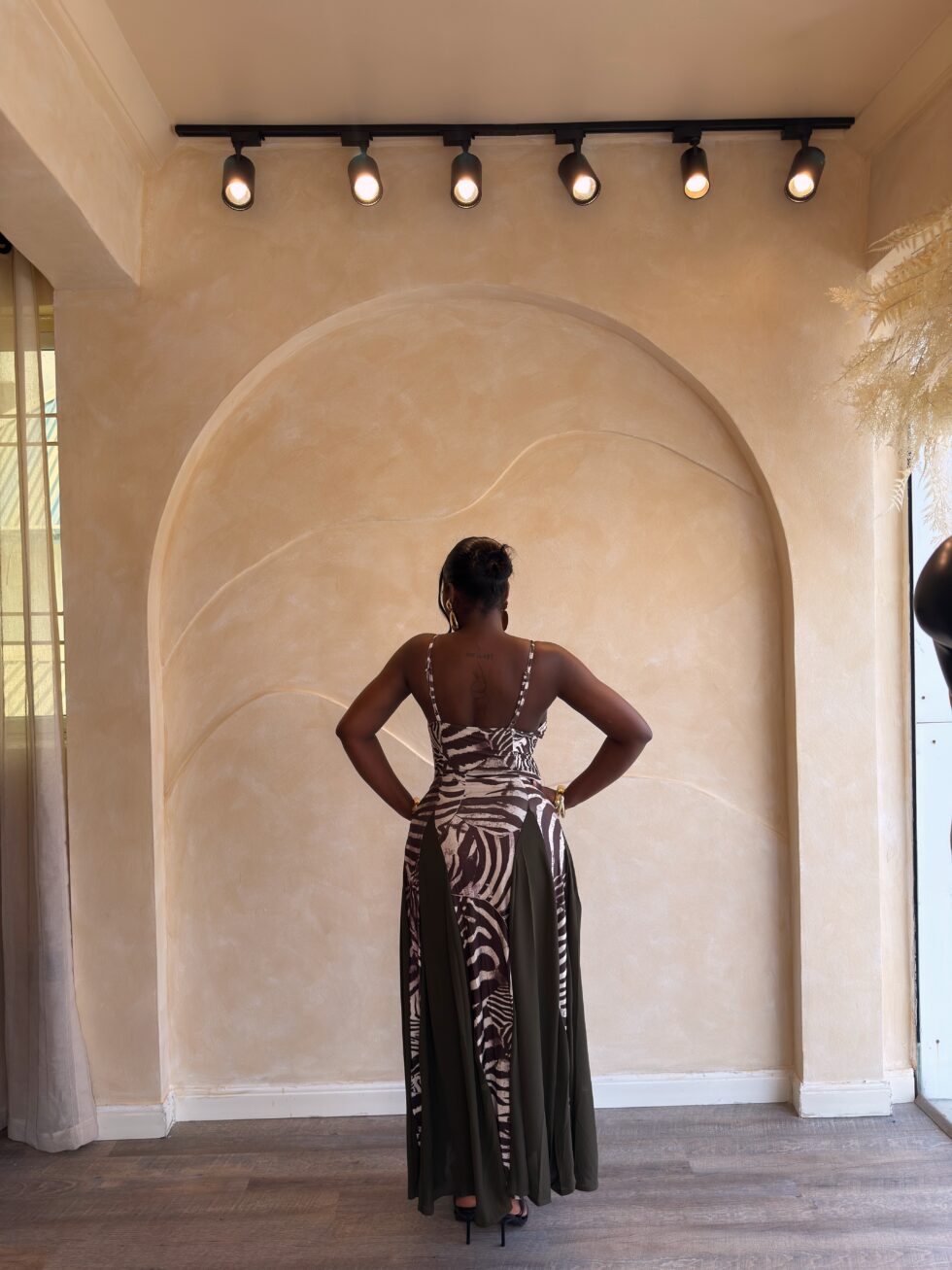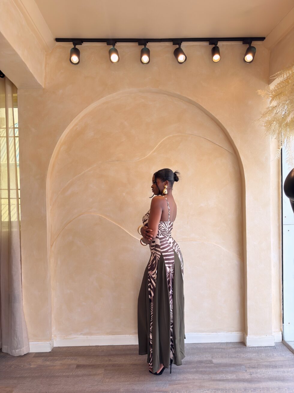 Introducing the Adora Maxi Dress, your new statement piece for when you crave elegance with a touch of drama. This stunning dress features a unique mix of earthy tones and bold patterned panels that create a visually sculpting effect on the body. The result? A silhouette that’s both flattering and unforgettable.