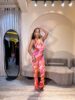 The Belinda Jumpsuit is the definition of bold femininity. Crafted from a sleek, body-hugging stretch fabric, it features a vibrant swirl print in shades of orange, pink, and coral — radiating warmth and confidence. The plunging halter neckline enhances your décolletage, while the open-back design adds a sensual edge that perfectly balances allure and class.