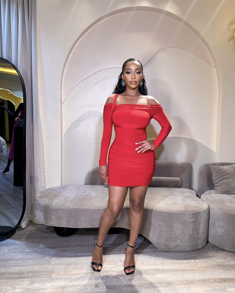 Make a statement in the Eleona Mini Dress, a sultry off-shoulder bodycon that exudes confidence and elegance. Designed to hug every curve, this bold red number ensures you steal the spotlight — no matter the occasion.