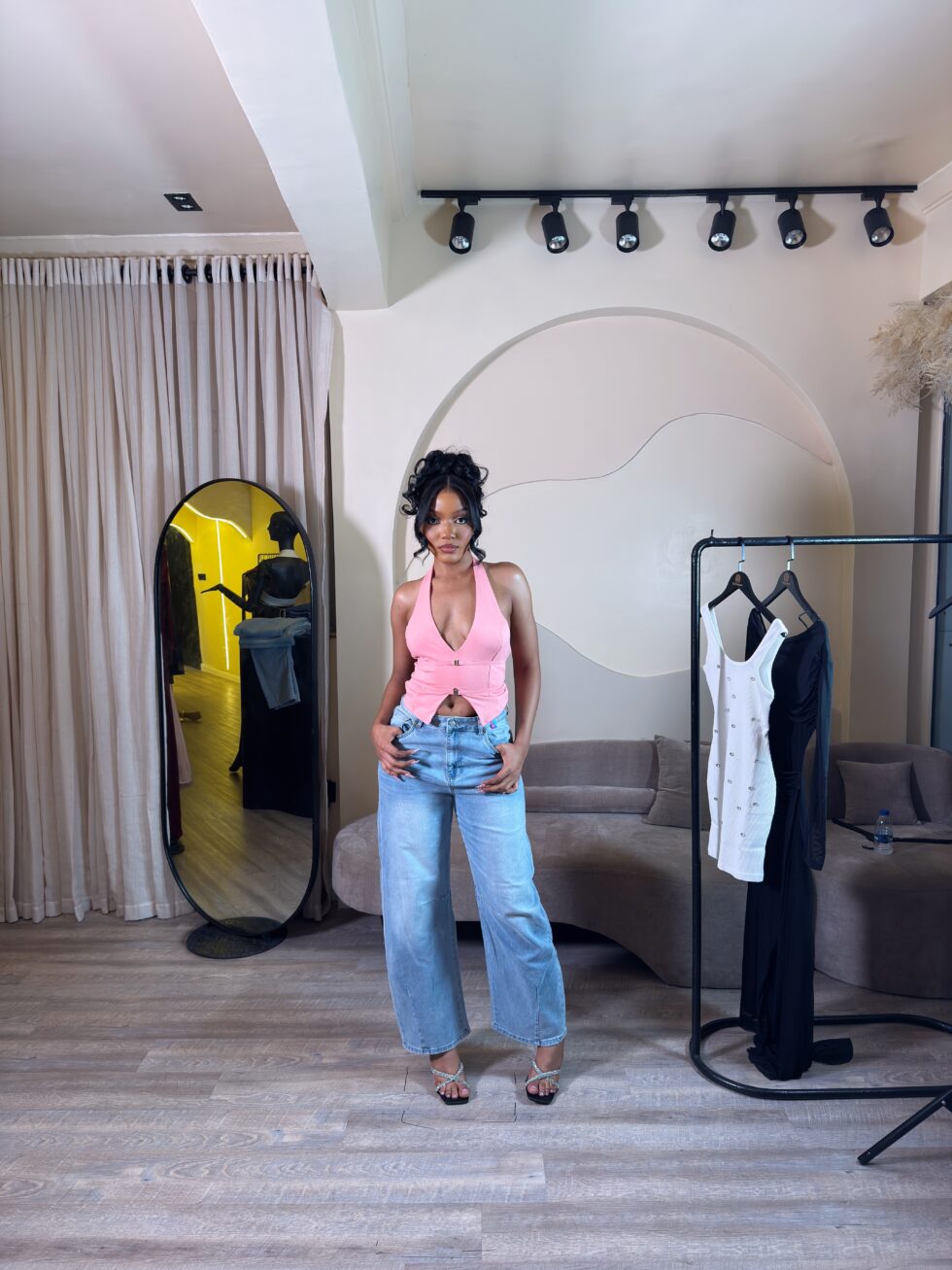 Flirty, feminine, and effortlessly cool — the Fania Top is the ultimate statement piece your wardrobe’s been waiting for. With its plunging neckline, halter silhouette, and playful button detailing, this top brings a fresh twist to modern minimalism. Perfect for dressing up denim or elevating your night-out look.