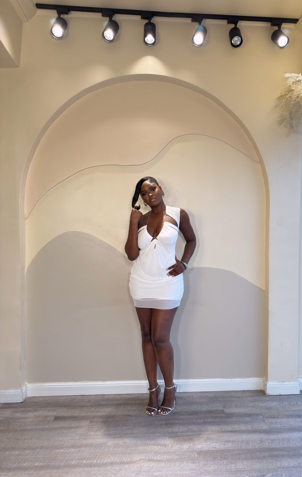 The Khamari Mini Dress is a statement piece designed to captivate from every angle. Crafted in a clean, radiant white hue, this asymmetrical mini features a one-shoulder neckline and delicate chest detailing that flatters your silhouette while exuding timeless allure. Perfect for evening soirées, cocktail events, or upscale dinners, it’s the kind of dress that turns heads effortlessly.