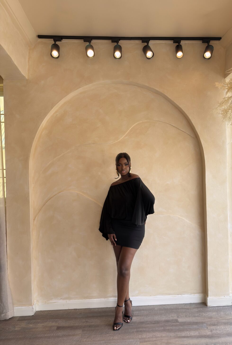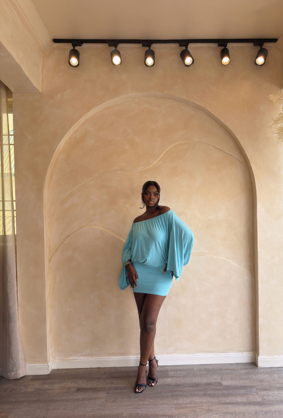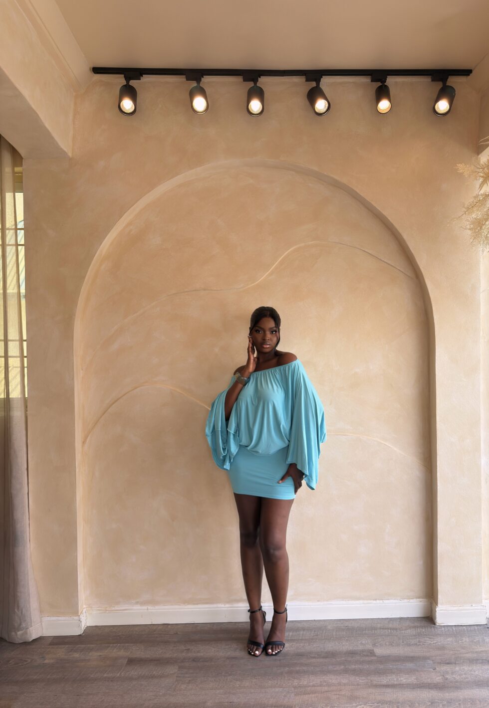 Step into sophistication with the Naledi Skirt Set, a stunning two-piece designed for the woman who loves a blend of drama and polish. Featuring a soft, off-the-shoulder batwing top paired with a curve-hugging mini skirt, Naledi is made to flatter every angle while keeping you effortlessly comfortable.