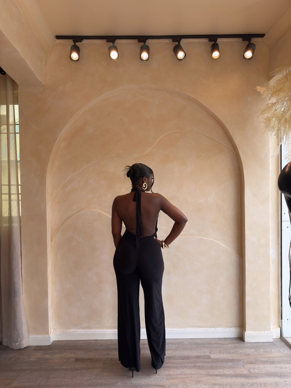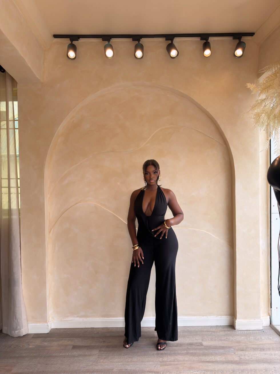 Turn every entrance into a moment with the Nemi Jumpsuit—a sleek, plunging, backless statement piece designed to accentuate your curves with elegance and confidence.