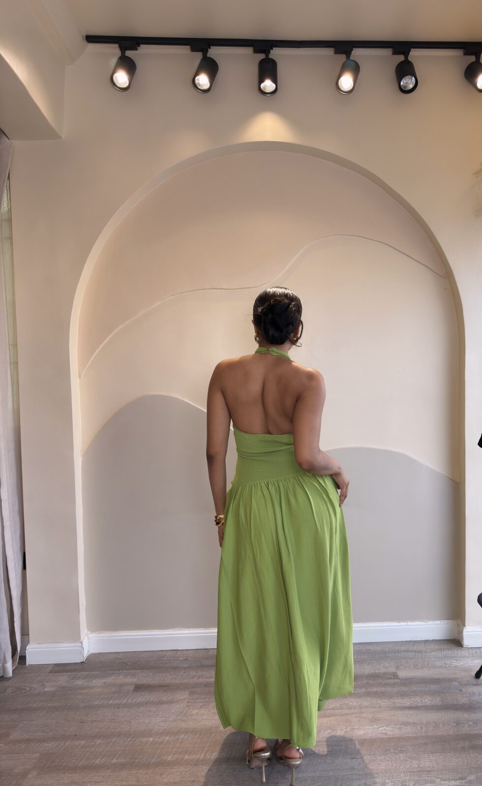 The Samiyah Maxi Dress is where sophistication meets simplicity. Crafted with a beautifully balanced design, this piece features a fitted halter-style bodice that flatters the shoulders and neckline, transitioning seamlessly into a soft, gathered maxi skirt that flows naturally with every step.