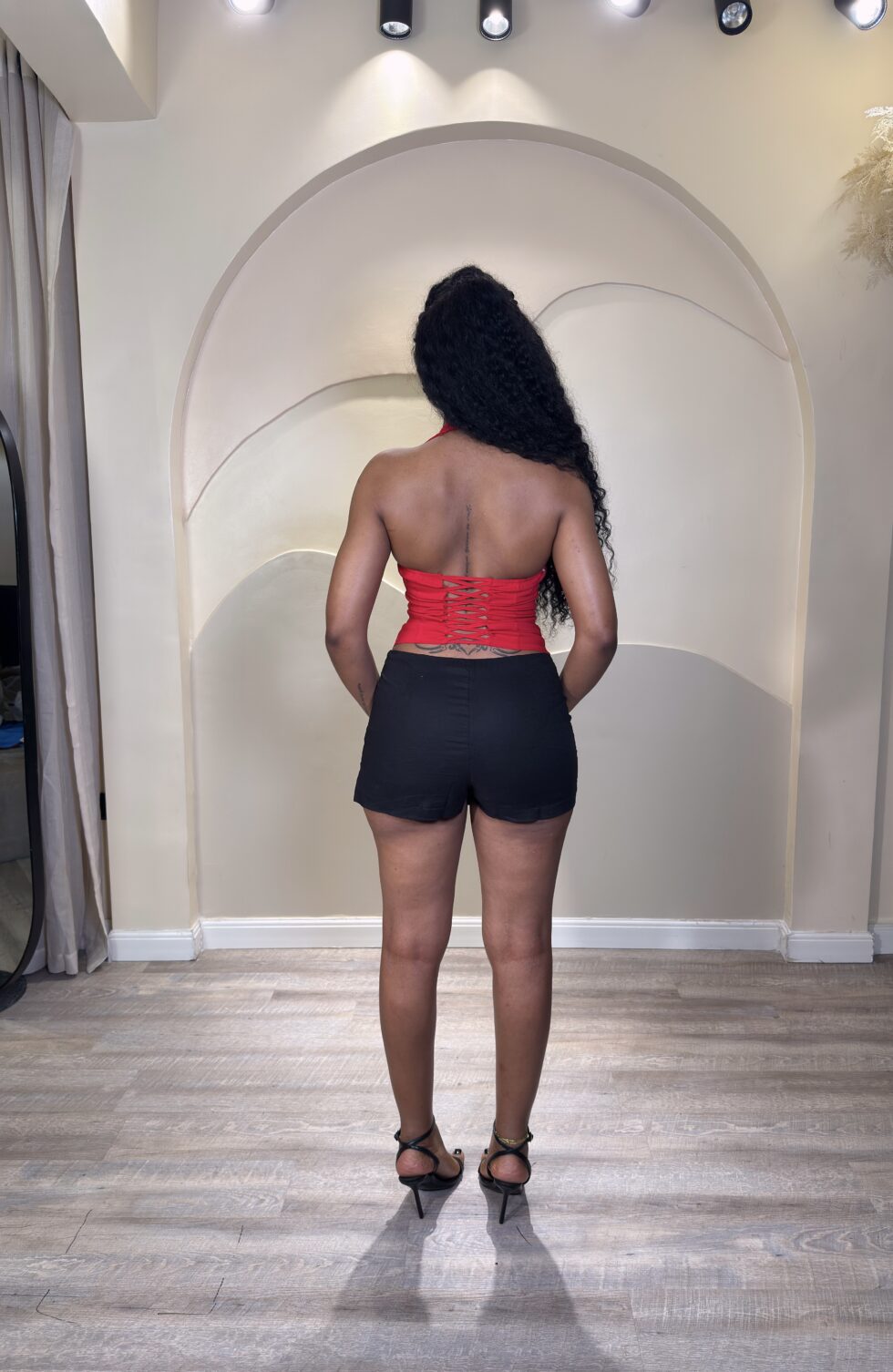 Available in both crisp white for an angelic chic vibe and vibrant red for daring nights out, this vest is crafted to make you stand out — whether you’re heading to brunch, a cocktail party, or an evening event. Pair it with matching shorts for a coordinated set, or mix it up with denim or a mini skirt for a bolder edge.