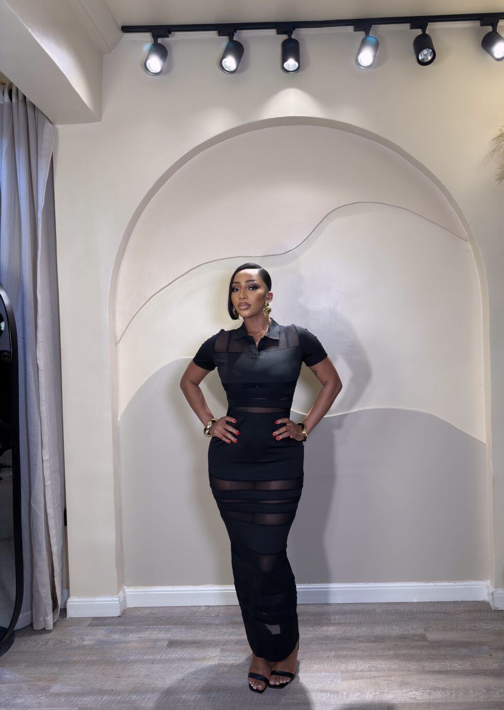 Turn heads in the effortlessly sultry Vivi Maxi Dress — a sleek, body-contouring silhouette that merges classic sophistication with modern edge. With sheer panel detailing and a flattering fit that hugs your curves in all the right places, this is your go-to for statement evening glamour.